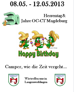 | 08.05. - 12.05.2013 Herrentag & 30 Jahre OC-CT Magdeburg [Programm online] | |||||||||||||||||||||||||||||||||||||||||||||||