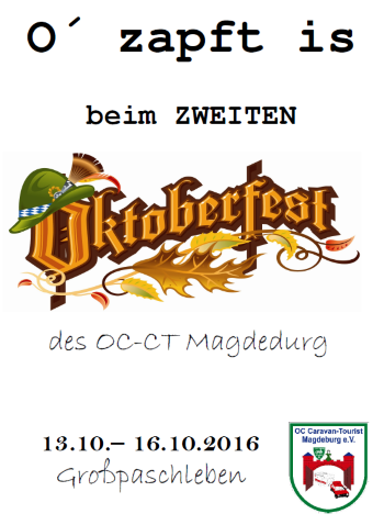 | 1. Oktoberfest des OC-CT-Magdeburg vom 16. - 19. Oktober 2014 in Großpaschleben | |||||||||||||||||||||||||||||||||||||||||||||||