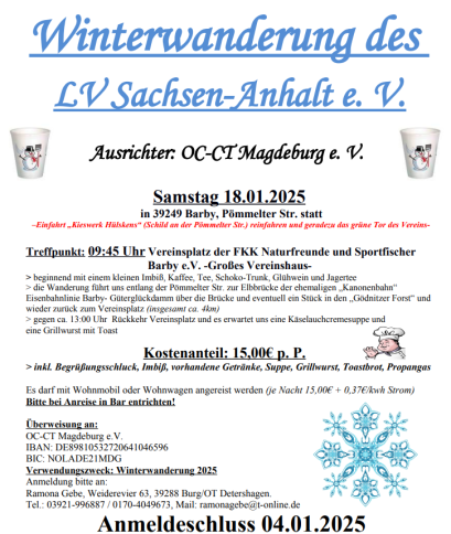 Winterwanderung des LV Sachsen-Anhalt e. V. findet, Ausrichter: