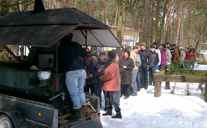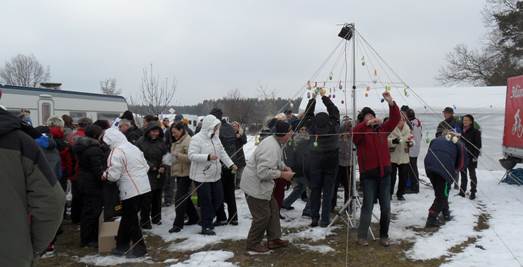 Wir luden ein zur Osterrallye an den kleinen Waldsee in Plötzky. 44 Einheiten folgten unserer Einladung, obwohl draußen das Wetter nicht zum Osterausflug einlud. Fam. Kell - aus dem Wittenberger Club- schoben gemeinsam mit Hartmut und mir, eine Woche vorher, einen Stellplatz für unsere Wohnwagen frei. Die ganze Wiese und die Nebenwege waren voller Schnee. Auf Anfragen, ob der Schnee (falls er nicht von alleine wegtauen würde) für unsere Rallye noch vom Campingplatzpersonal geschoben werden würde, bekamen wir ein NEIN, als Antwort. Also kam es so, wie es kommen musste, jeder bewaffnete sich mit einem Schneeschieber und schaufelte sich ein Plätzchen frei, wo er seinen Wohnsitz für Ostern abstellte. Ein Gutes hat es gehabt: das regt den Kreislauf und die Durchblutung an… ;)) Nach dem