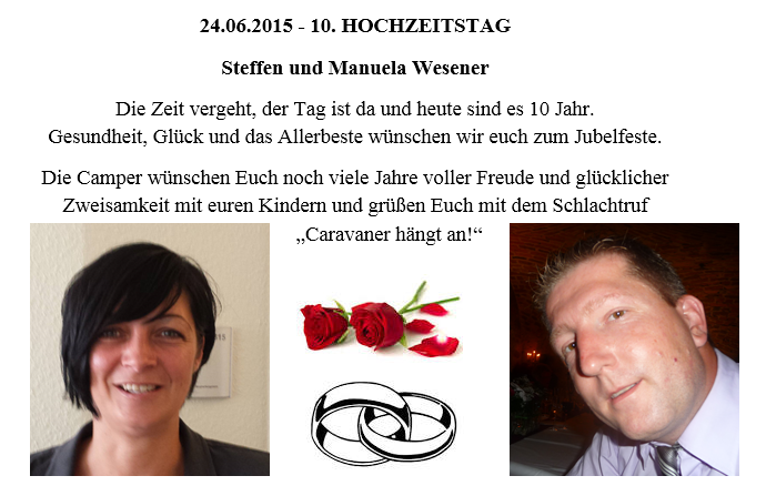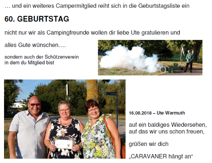 „Happy Birthday", stimmen wir gerne ein. In diesem Sinn: „CARAVANER HÄNGT AN"